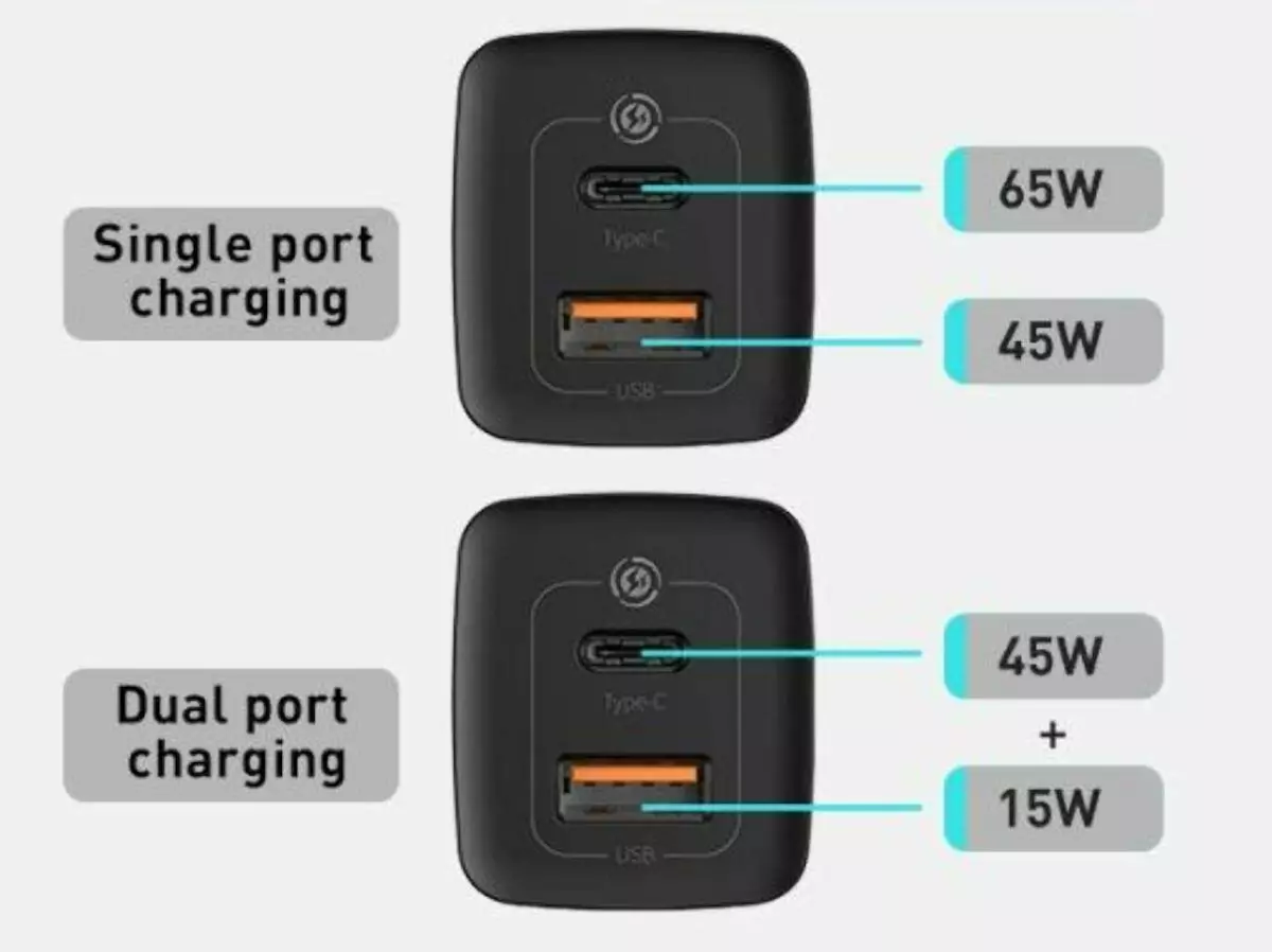 - Type-C+USB-A: 45W+18W