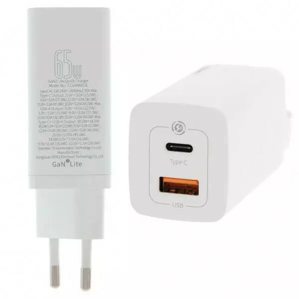 Baseus GaN2 Lite Quick Charger 65W (1 Type-C + 1 USB)
