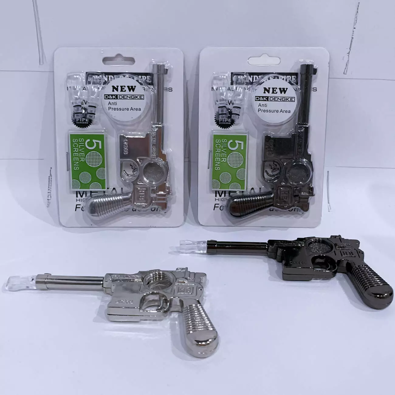 Металлическая курительная трубка D&K DENGKE Anti Pressure Area, выполненная в виде пистолета Маузер, сочетает эффектный дизайн и практичность. Необычная форма делает изделие заметным и привлекательным, а продуманная конструкция обеспечивает комфортное курение без перегрева и избыточного давления.