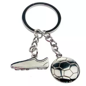 Идеальный брелок для любителей футбола! Металлический брелок выполнен в виде двух подвесок: футбольного мяча и бутсы. Он станет стильным аксессуаром для ключей, рюкзака или сумки, а также отличным подарком для фанатов футбола.