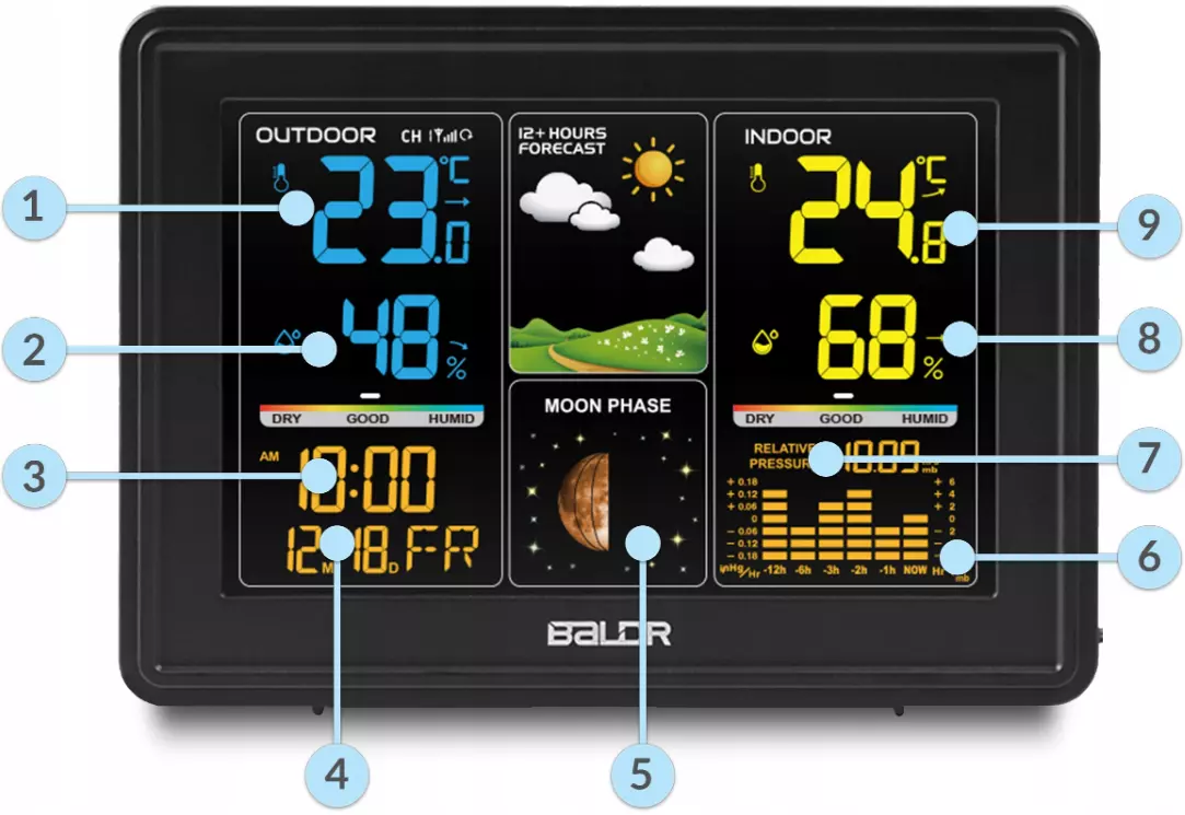 - Метеостанция со встроенным гигрометром позволяет контролировать