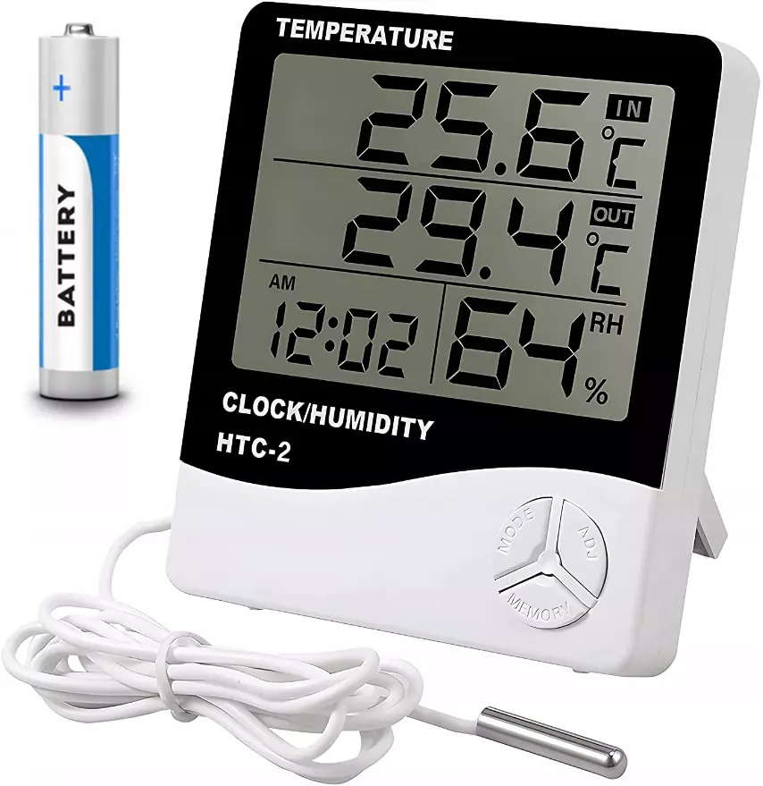 ЦИФРОВОЙ ГИГРОМЕТР С ВНЕШНИМ ДАТЧИКОМ + БАТАРЕЙКА В