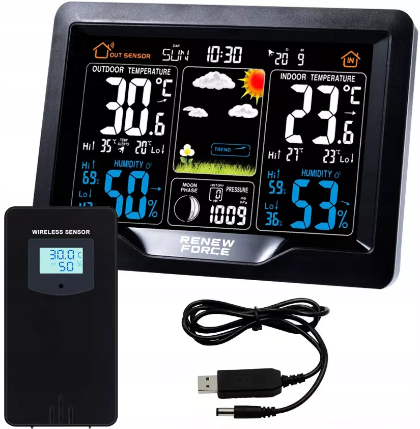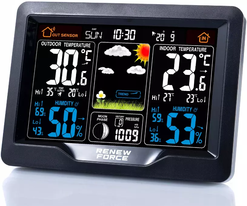 - Кроме того, метеостанция отображает дату и время, поэтому вы