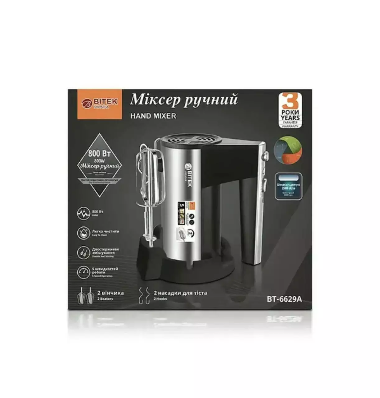 Міксер ручний 800Вт BITEK BT-6629A 6931 (16 шт)