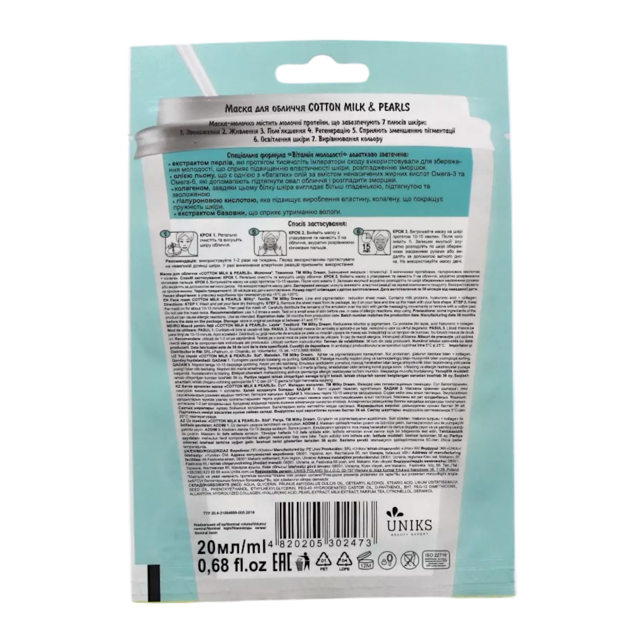 Milky Dream Маска для обличчя тканинна Cotton Milk & Pearls 20 мл —