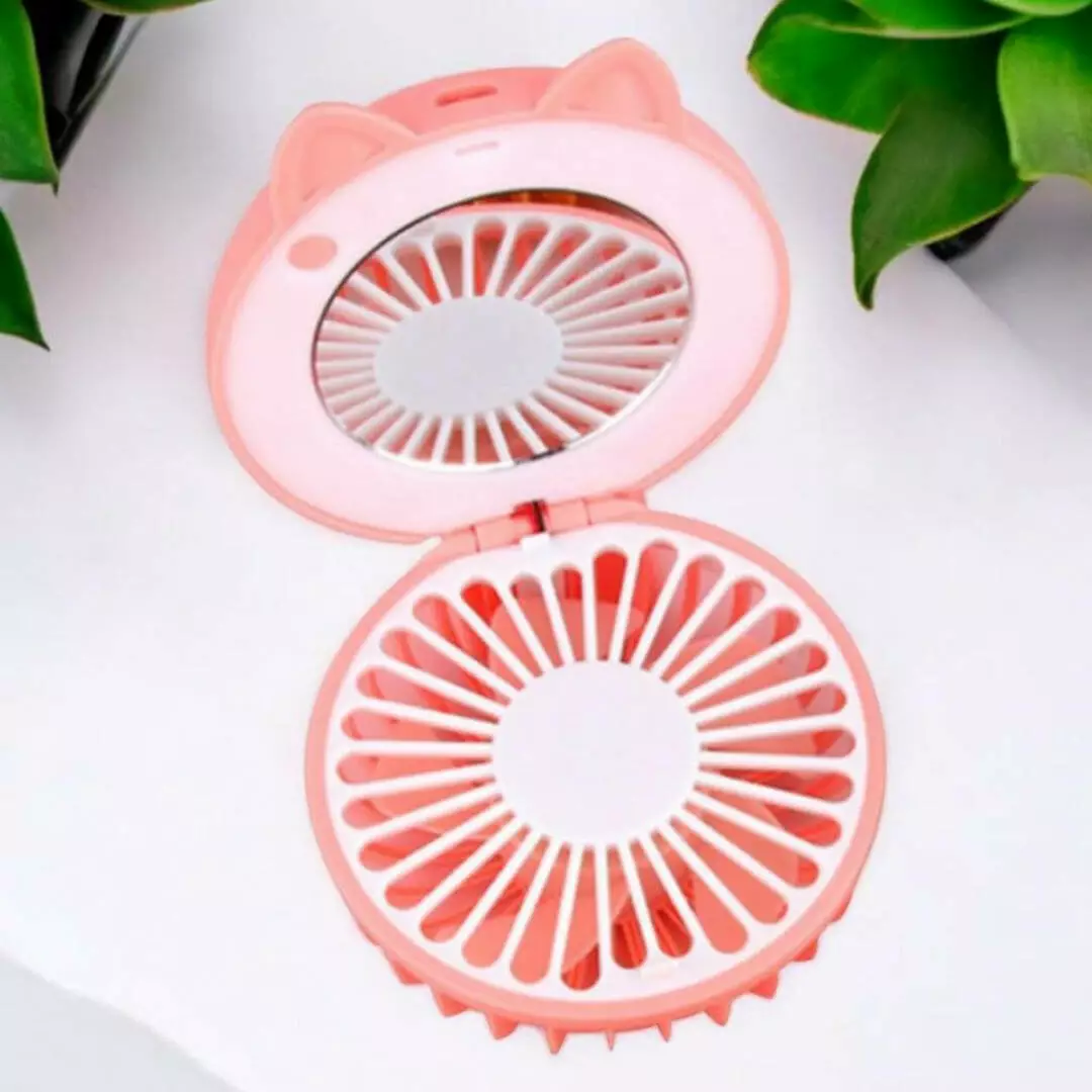 Многофункциональность: Мини вентилятор с зеркалом и LED-подсветкой объединяет в себе три функции: освежающий бриз, яркое освещение и удобное зеркало. Идеален для точного макияжа в любых условиях.