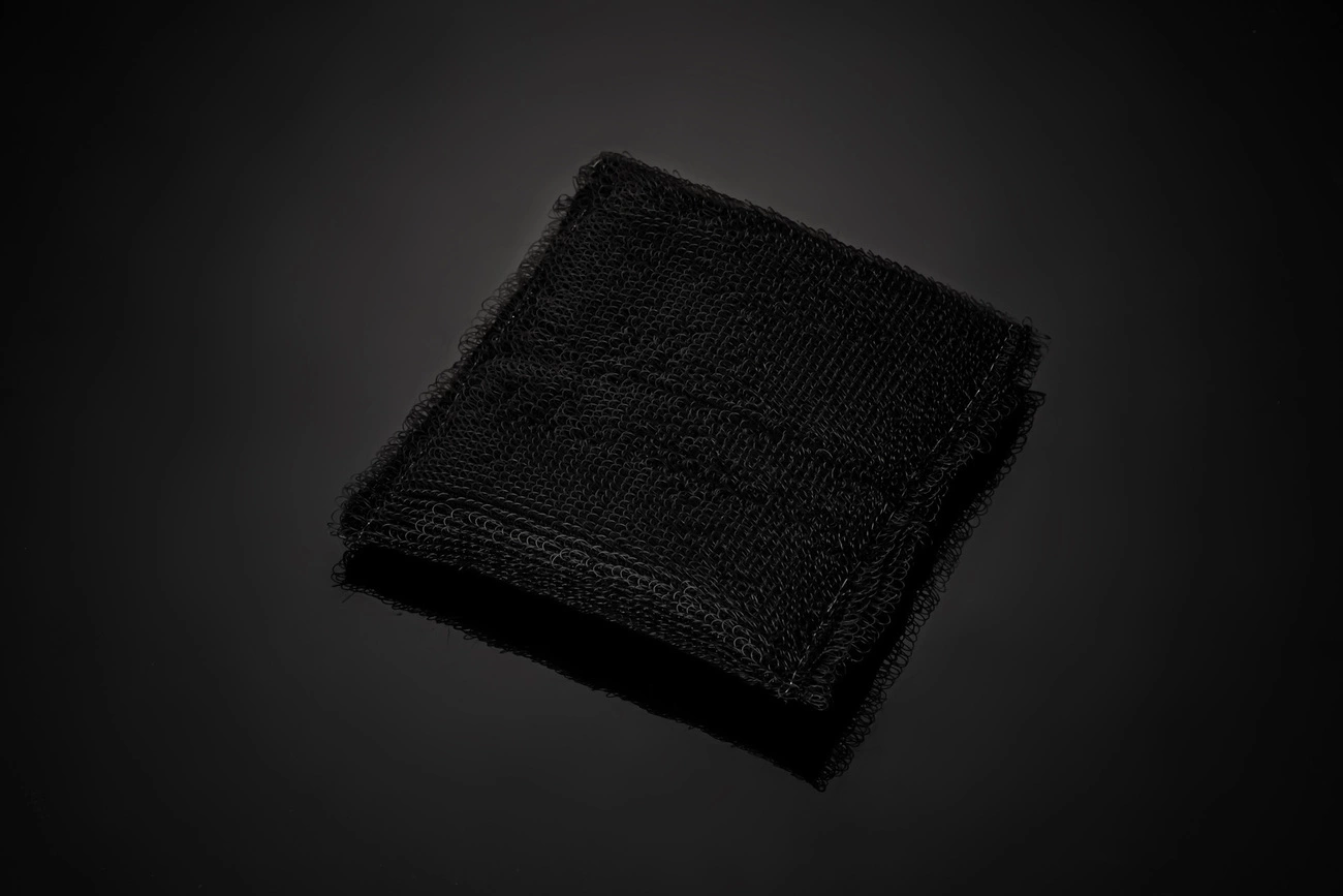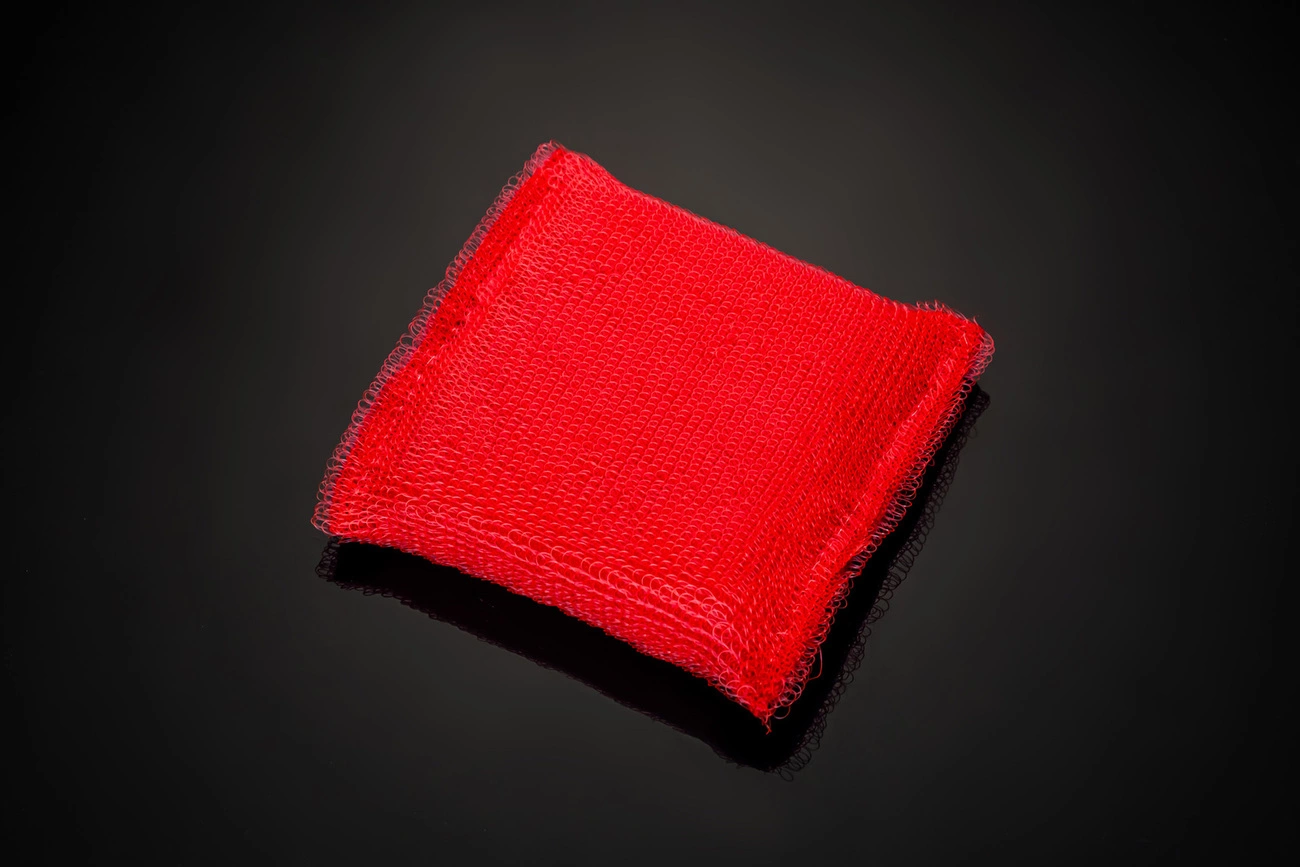 Жаккард цієї кухонної губки формується міцними петлями з поліамідної мононити, які розташовані внахліст під кутом 25 "-30" до поверхні виробу. Вони дуже добре підривають пригорілі або прікіпевшіх залишки їжі з посуду і робочих поверхонь. Основа вироби - переплетення поліпропіленових ниток. Всередині знаходиться поролонова вставка для утворення густої піни.