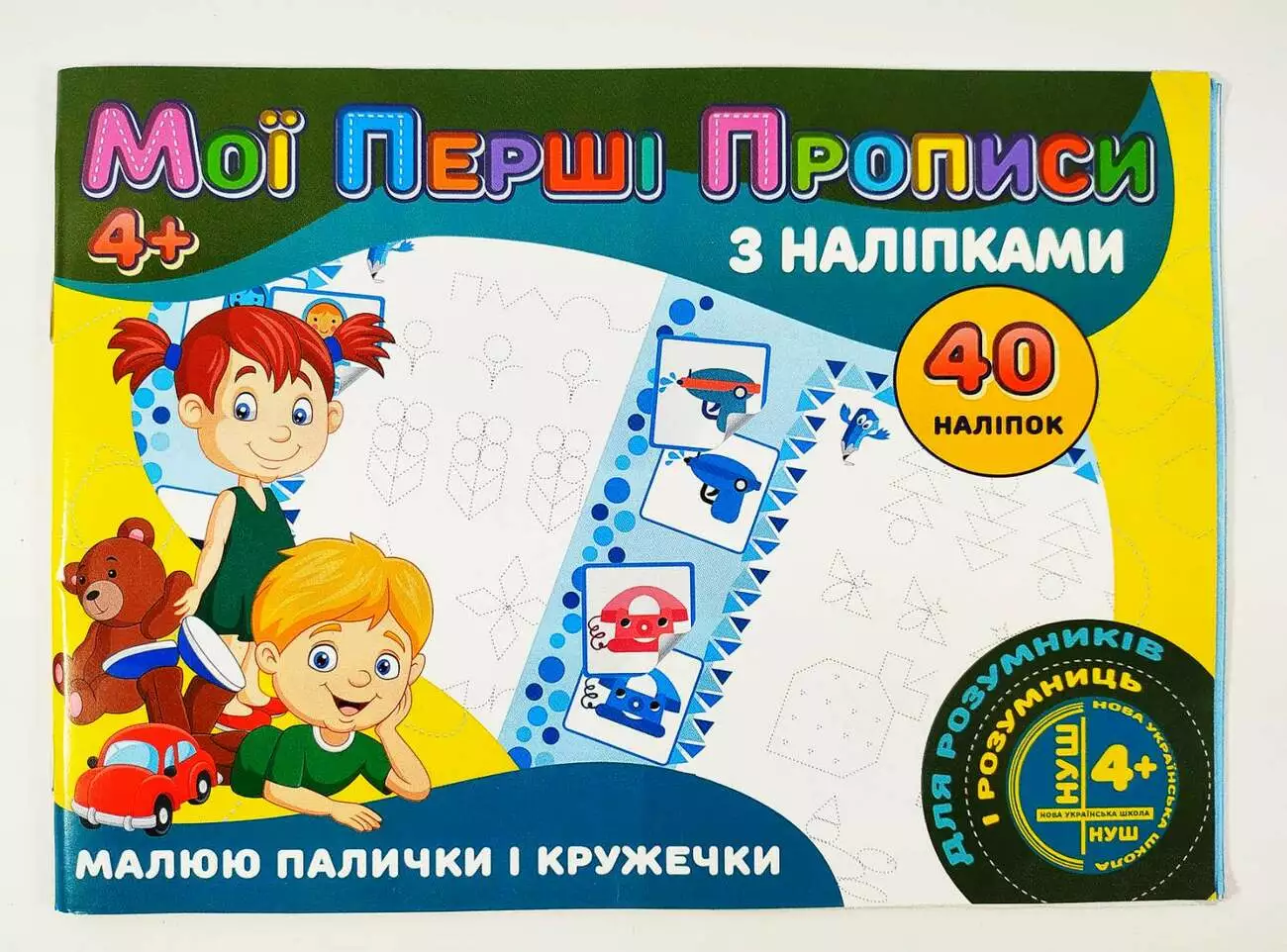 Мої перші прописи з наліпками 40 наліпок: Малюю палички і