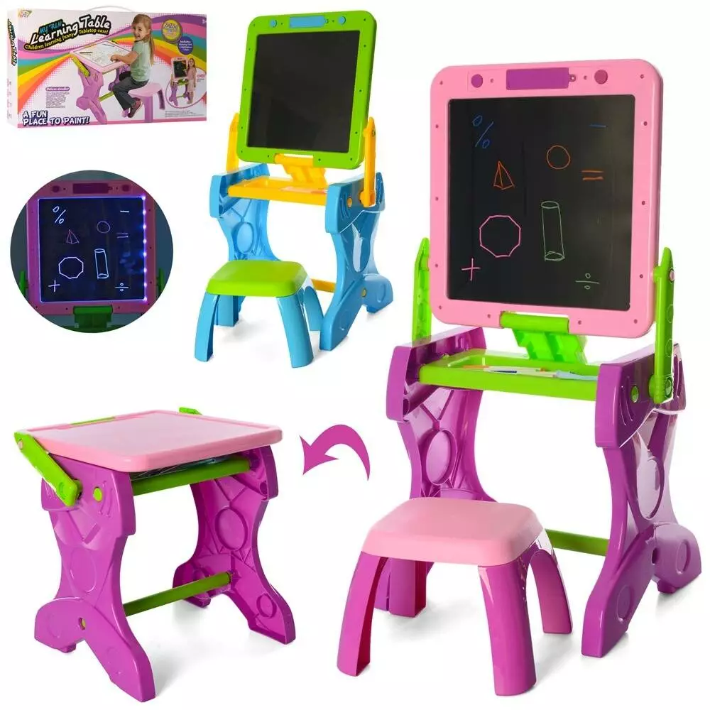 Фотография 1 товарной позиции интернет-магазина детских игрушек www.smarttoys.com.ua Мольберт YM881-882 2в1 (дошка для малюв./столик), маркери, світло, бат., кор., 67,5-37,5-9,5см.