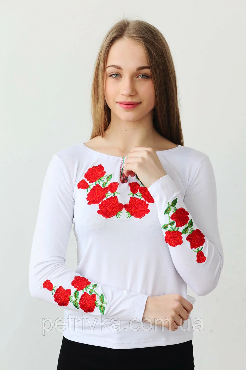 Молодіжна вишита жіноча футболка Розі В-8