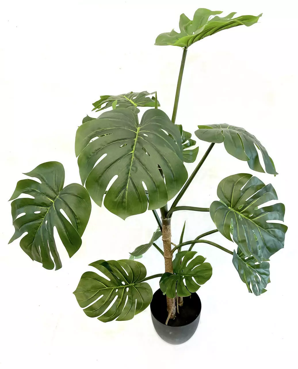 Это искусственное растение Монстера представлено в черном пластиковом горшке. Качество мельчайших деталей оказывает поразительный эффект живого растения. Гибкие стебли и листья позволяют разворачивать их и придавать любую форму.