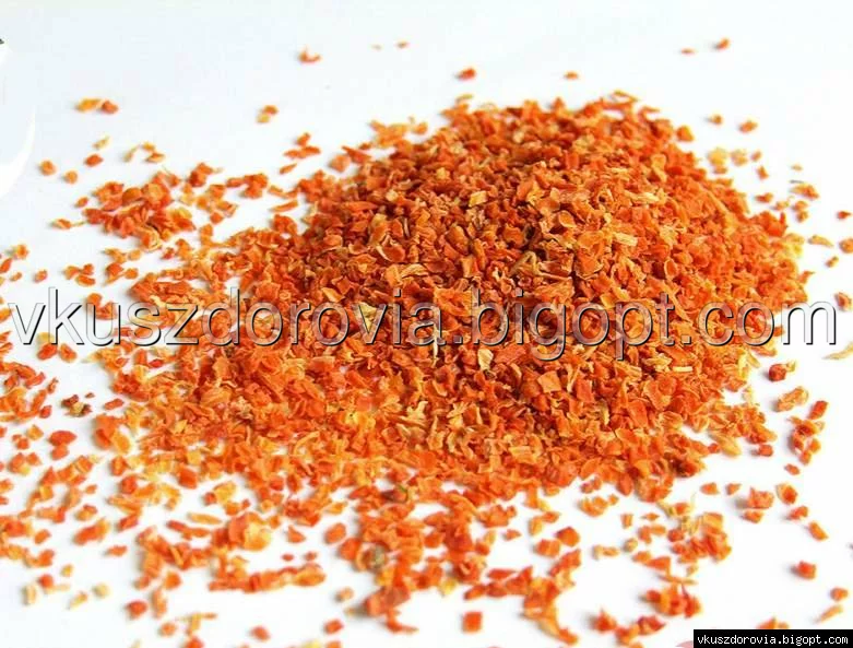 Морковь сушёная обладает ароматом и вкусом свежей моркови. Пряность