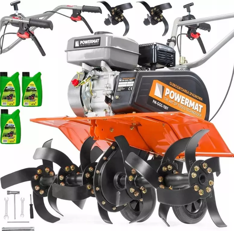 Благодаря двигателю внутреннего сгорания мощностью 7 км, даже в сложных условиях не ощущается недостатка мощности, а прикрепленные ролики делают маневрирование машины легким и непринужденным.