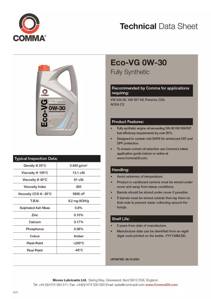 Моторное масло Comma ECO-VG 0W-30 1л (12шт/уп)
