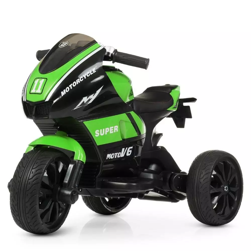 Фотография 1 товарной позиции интернет-магазина детских игрушек www.smarttoys.com.ua Мотоцикл M 4135EL-5 2мот.25W, 2акум.6V5AH, MP3, світ.кол. EVA, муз., світло, шкір.сидіння, зелений.