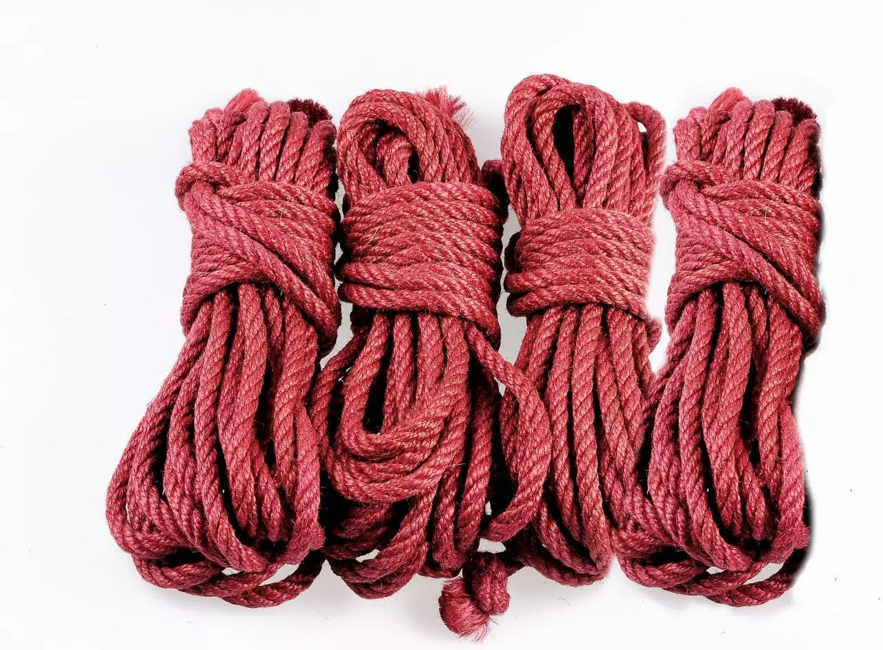 Мотузка для шибарі, бордовий 6мм/8м, джут
