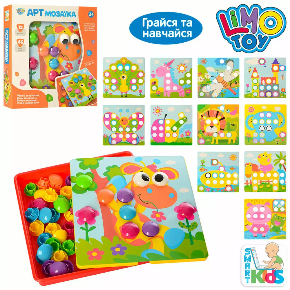 Фотография 1 товарной позиции интернет-магазина детских игрушек www.smarttoys.com.ua Мозаїка SK 0005 ігр.поле 25-25см., 12картинок, 46фишок, кор., 31,5-31,5-5см.