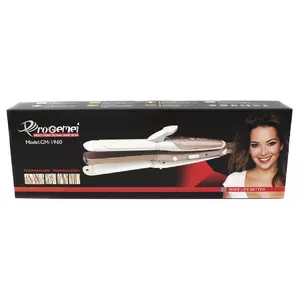 Утюжок для выравнивания волос, быстро нагревается, с возможностью регулировки рабочей температуры. Нагревательная поверхность изготовлена из керамики, которая не палит волосы.