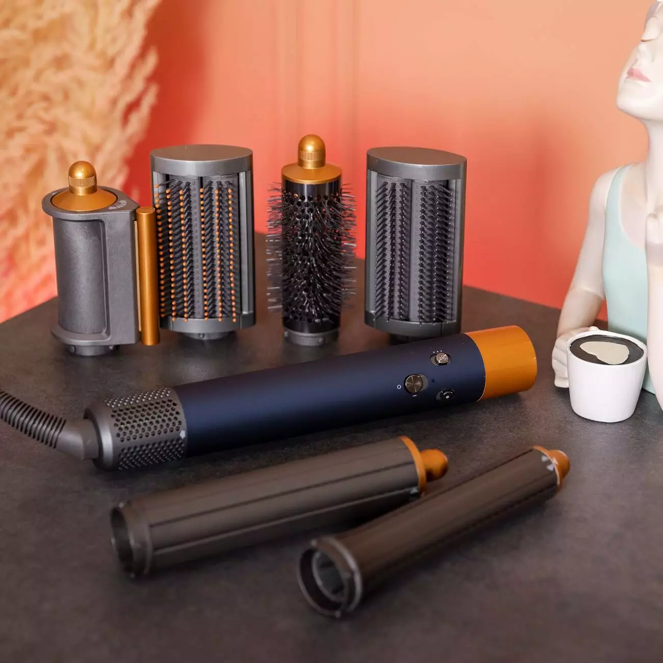 1. Циліндрична насадка діаметром 30, 40 мм для створення локонів і хвиль. Захоплює пасмо автоматично за допомогою повітряного потоку, що дає змогу скоротити час на створення укладки навіть без особливих навичок. Укладання здійснюється не завдяки високій температурі, а завдяки повітрю, завдяки чому можна зберегти здоров'я волосся. Підходить для всіх типів волосся різної довжини. Залежно від напрямку повітряного потоку дає змогу створювати симетричні й асиметричні укладки.