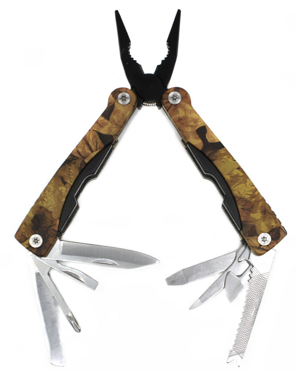 Находка для истинных мужчин! Универсальные пассатижи туристические/автомобильные с множеством инструментов и ножом в том числе. Качественный прочный материал - сталь, крепкая ручка изделия. В комплекте идет чехол черный на липучке, который можно фиксировать на ремень. Размеры изделия в сложенном виде 10.5 х 4 см.