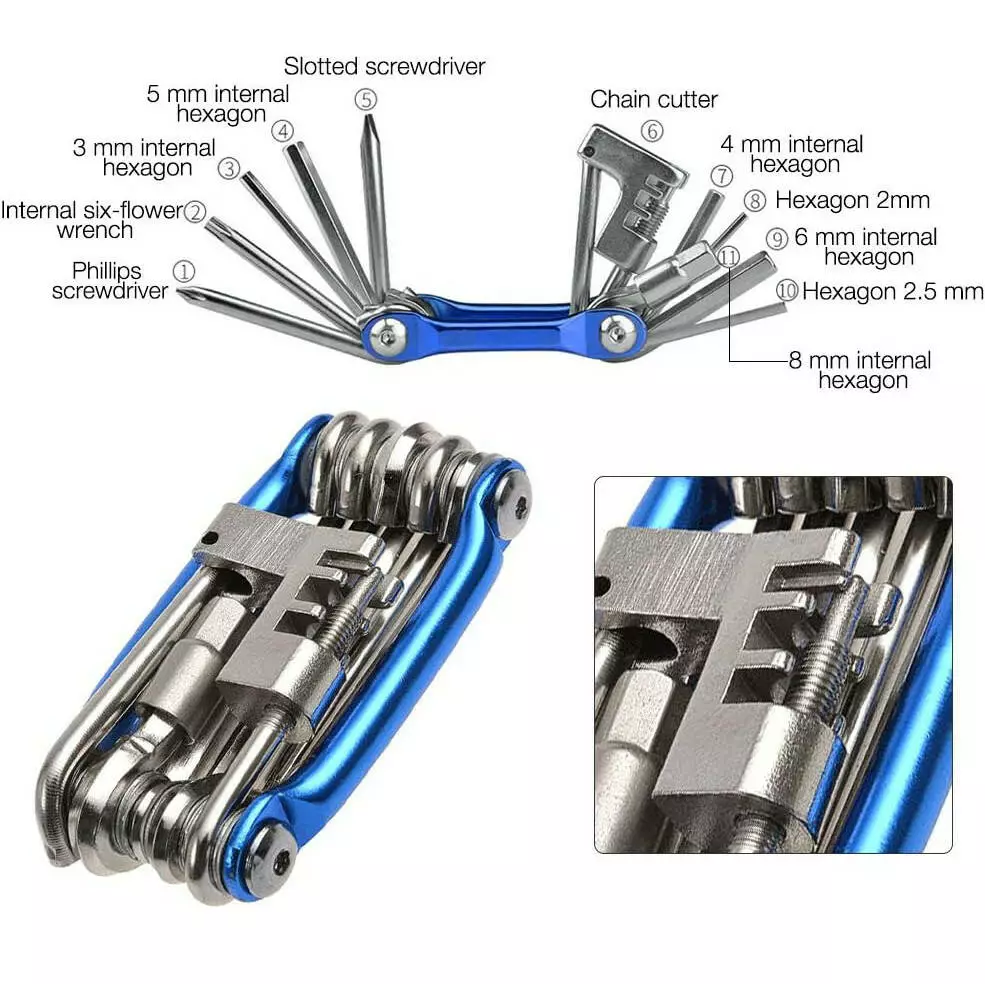 шестигранник 2,5 мм, 2мм, внутренний шестигранник 3 мм, 4 мм, 5 мм, 6 мм, 8 мм, внутренний шестицветный ключ, отвертка Philips, цепной резак, шлицевая