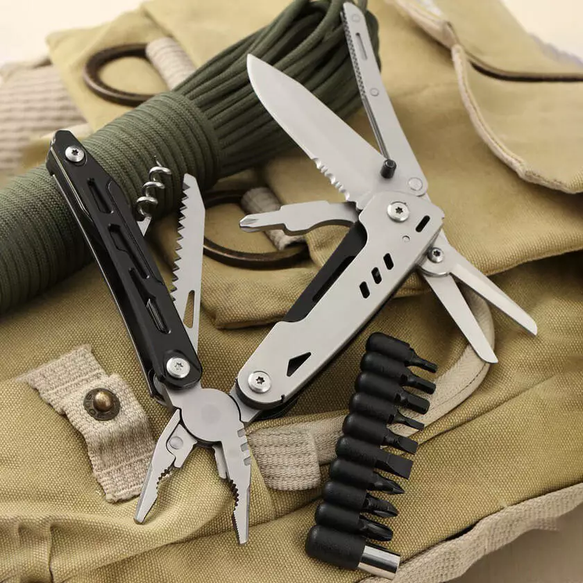 • Функции: включает набор инструментов, таких как нож, отвертки, плоскогубцы, открывалка для бутылок, ножницы и другие полезные элементы.