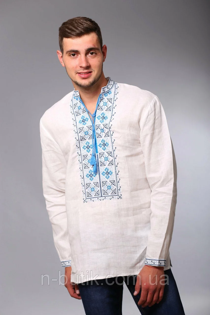 Вышиванка с длинным рукавом пошита из натурального белого льна. На