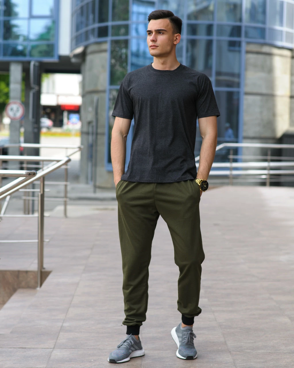 Мужской комплект - оливковые спортивные штаны (хаки) и хаки футболка (весна/лето/осень)
