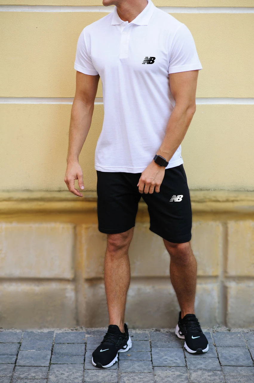 Мужской летний комплект шорты и футболка поло New Balance (Нью Баланс, Нью Бэланс, Нью Беланс)