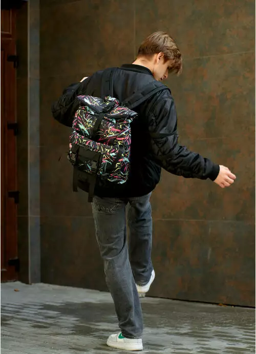 фиксатором: рюкзак не откроется самостоятельно от нагрузок, а