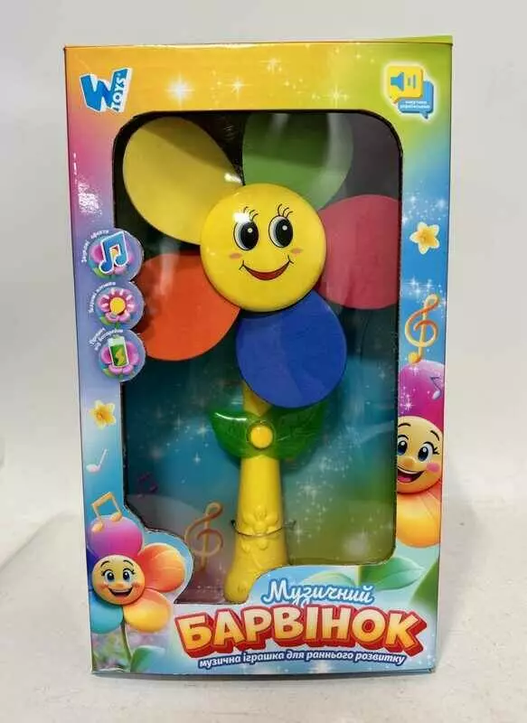 Главная > Каталог > Игрушки > Развивающие игрушки > Музична квітка 10645 (36) "WToys", ОЗВУЧУВАННЯ УКРАЇНСЬКОЮ МОВОЮ, яскраве підсвічування, пісні, пелюстки обертаються, в коробці оптом