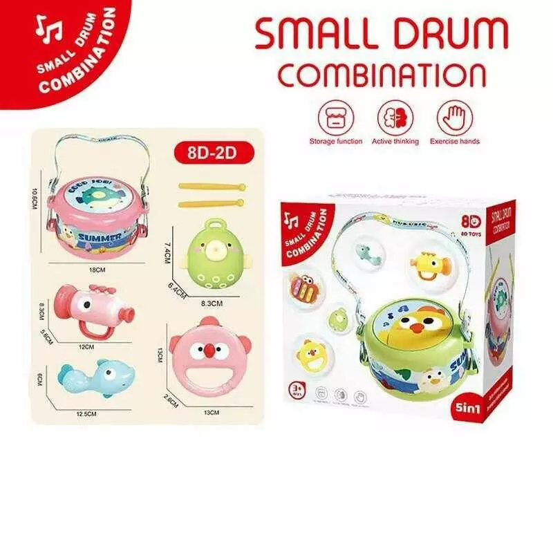 Музичні інструменти 8 D 2 C (36) барабан, бубон, маракаси-брязкальця, труба, барабанні палички, ремінці, гумові елементи, в коробці