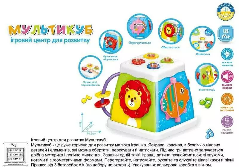 Музичний мультибокс 38955 (72/2) "WToys", УКРАЇНСЬКЕ ОЗВУЧУВАННЯ, пісні, казки, назви тварин, історії, світло, пальчикові ігри, брязкальце, в коробці