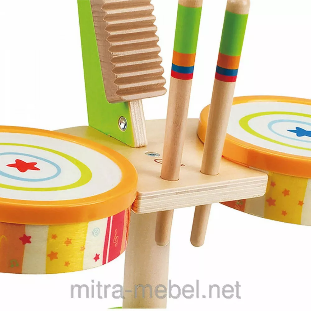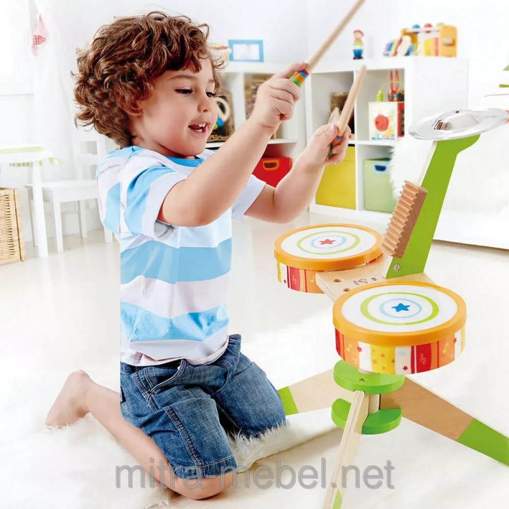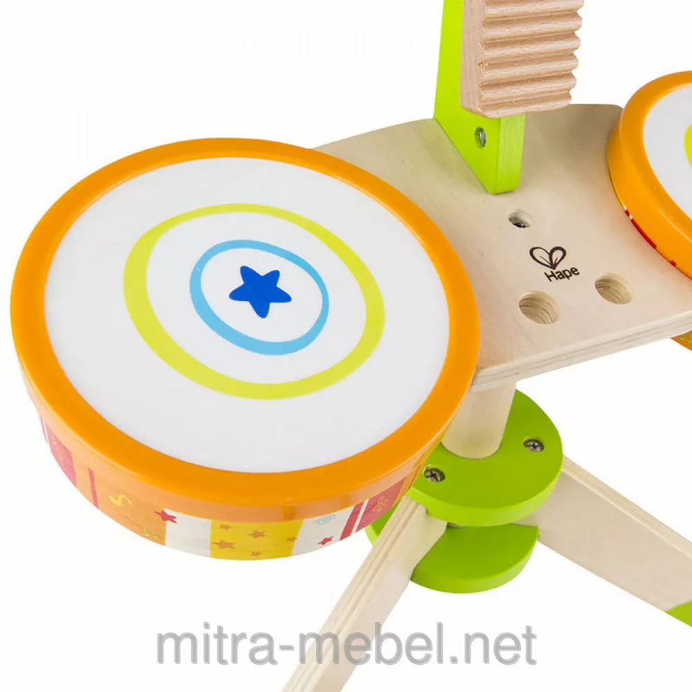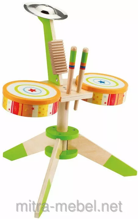 Устойчивая установка на треноге предлагает поиграть на барабанах,