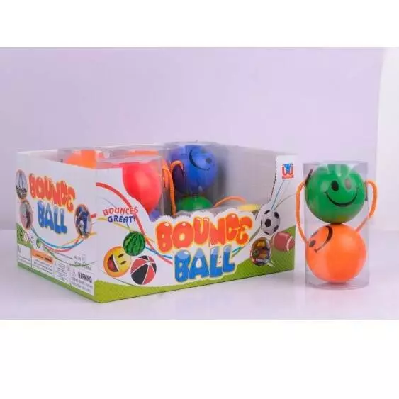Фотография 1 товарной позиции интернет-магазина детских игрушек www.smarttoys.com.ua М'яч YY-45 фомовий, смайл, набір 2шт., колба, 12шт.(мікс кольорів) в диспл., 26,5-20-12,5см.