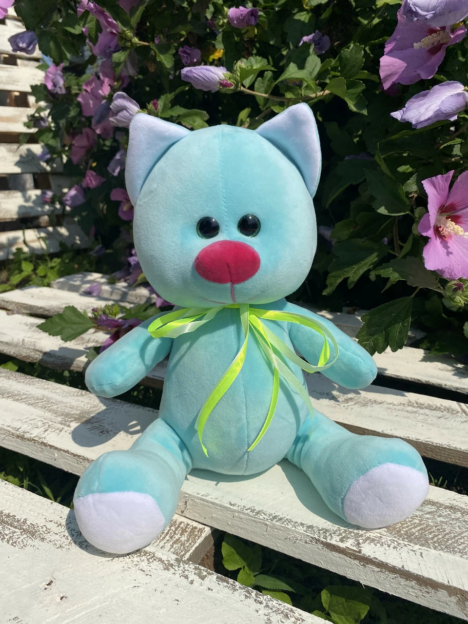 Игрушка изготовлена из качественных материалов, мягкая и приятная на ощупь. Мятного цвета. Размер 33 см.