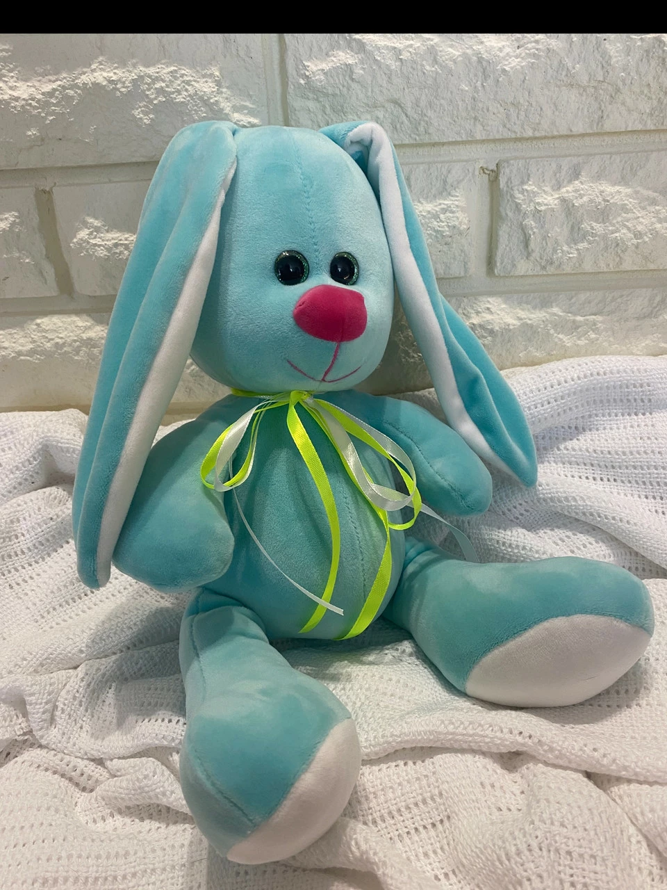 Игрушка изготовлена с качественных материалов, мягкая и приятная на ощупь. Мятного цвета. Размер 33 см.