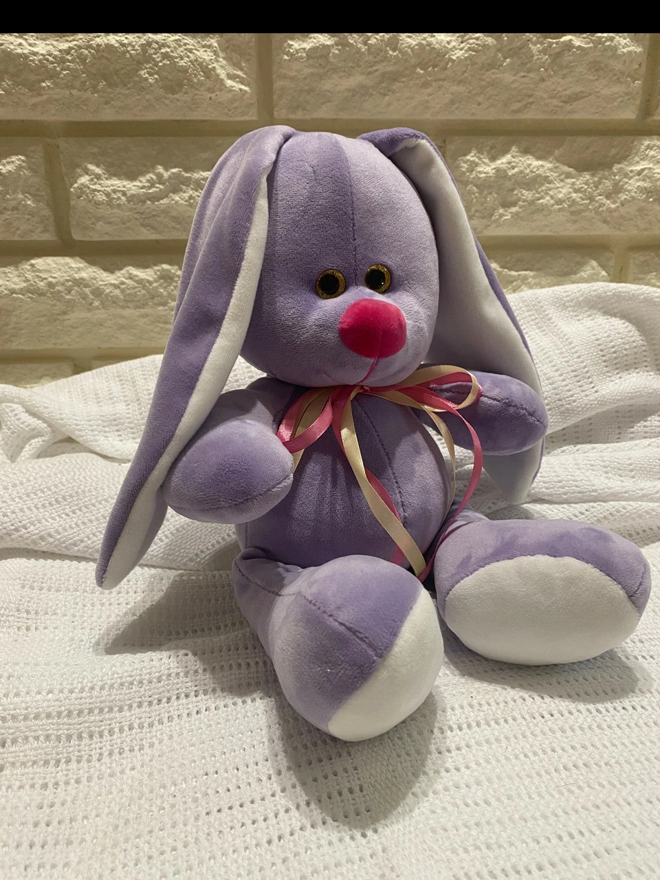 Игрушка изготовлена с качественных материалов, Мягкая и приятная ощупь. Лавандового цвета. Размер 33 см.