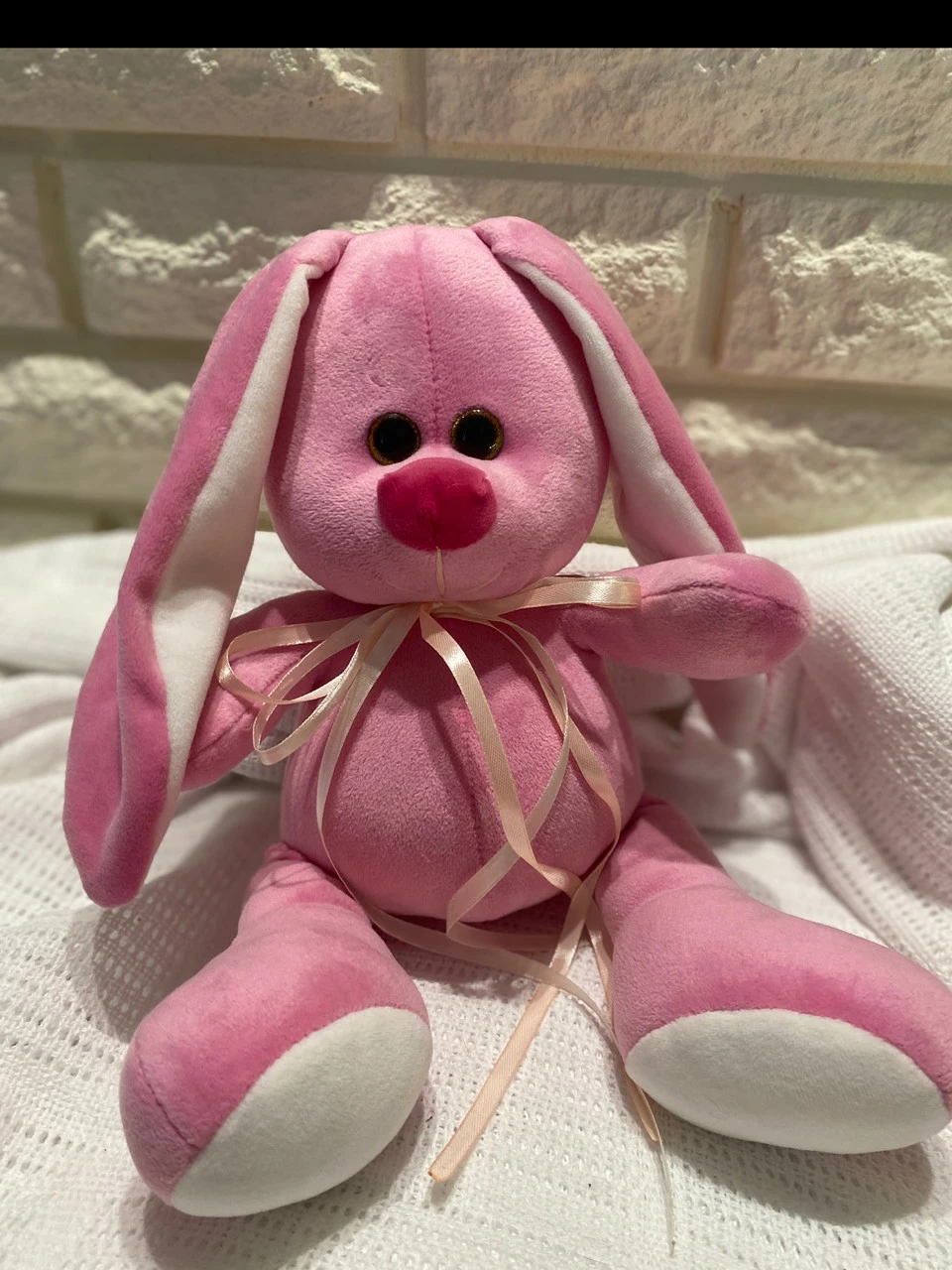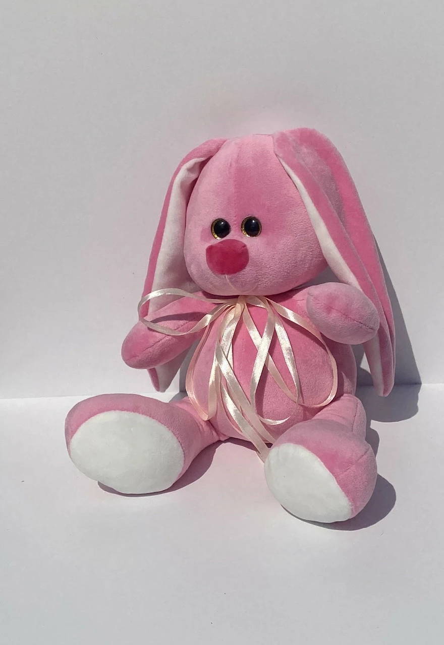 Игрушка изготовлена с качественных материалов, мягкая и приятная на ощупь. Розового цвета. Размер 33 см.