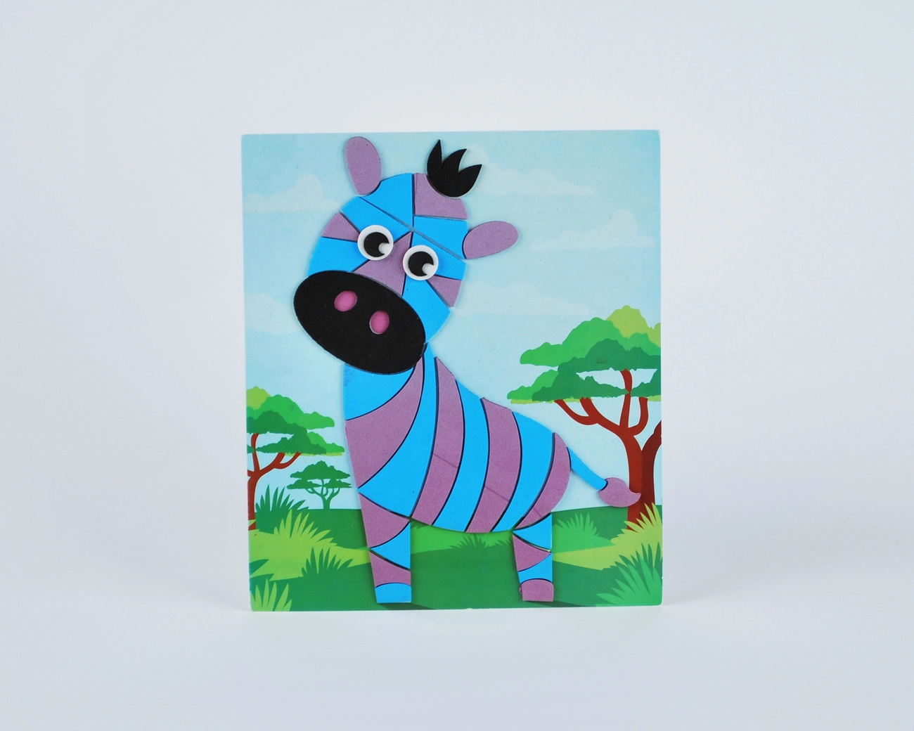 До складу мозаїк входить: картонна основа-листівка з великими контурами деталей; м’які деталі на клейовій основі для мозаїки; магніт.