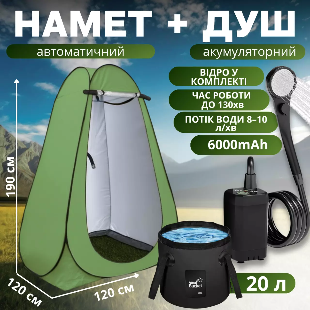 Комплект 3в1 палатка + портативний душ + відро 20 л — це