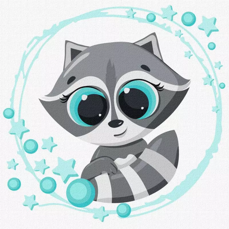 Набір 7+ для розпису по номерах. "Маленький єнот" 30х30см