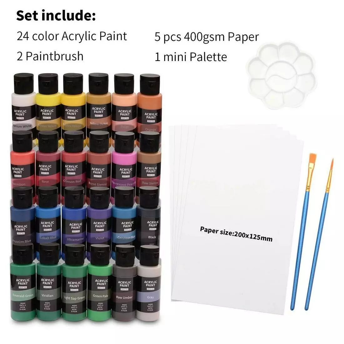 Набір акрилових фарб Acrylic Paint Set 24 пляшечки по 59 мл, папір