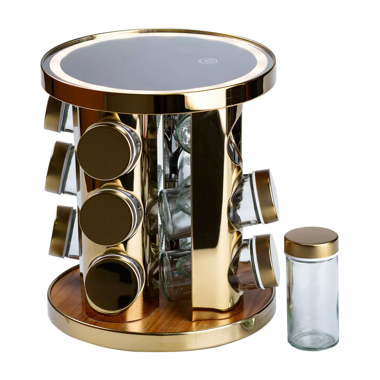 Набір баночок для спецій 12 баночок по 100 мл на підставці з дзеркалом та LED-підсвіткою