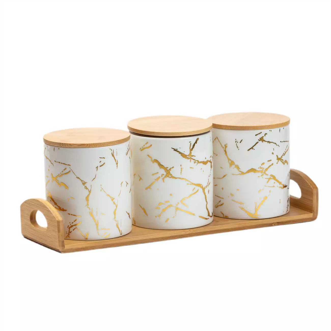порцелянових банок, кожна з яких має бамбукову кришку, що
