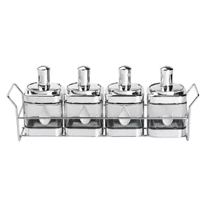 У набір входить підставка з нержавіючої сталі для зручної організації зберігання та використання ємностей.