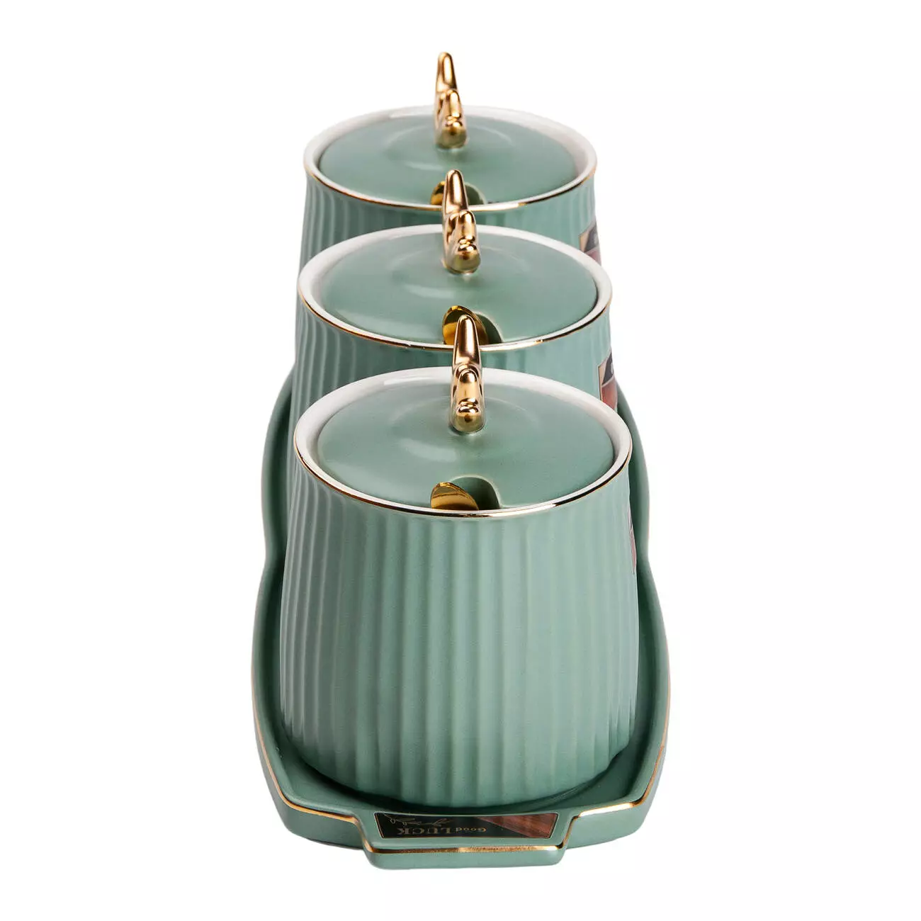 Набір банок для зберігання продуктів 3 штуки по 400 мл на порцеляновій підставці, зелений