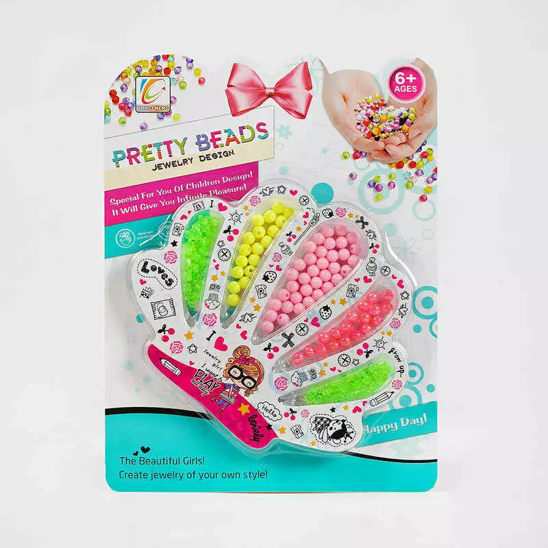 Набір бісеру 6008-1 (288/2) “Pretty beads”, 5 видів намистин, нитки, на листі