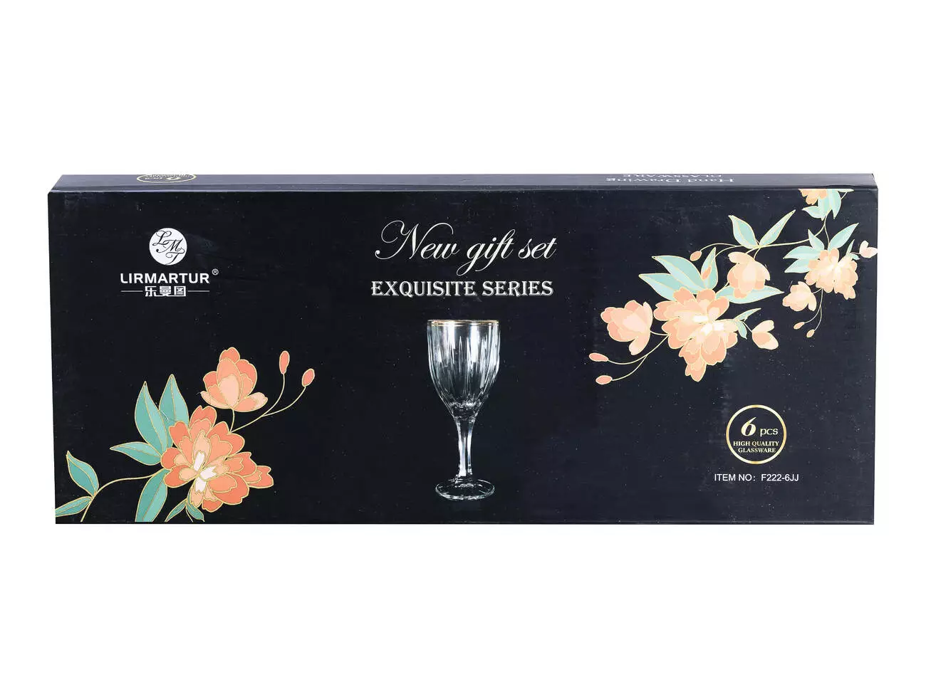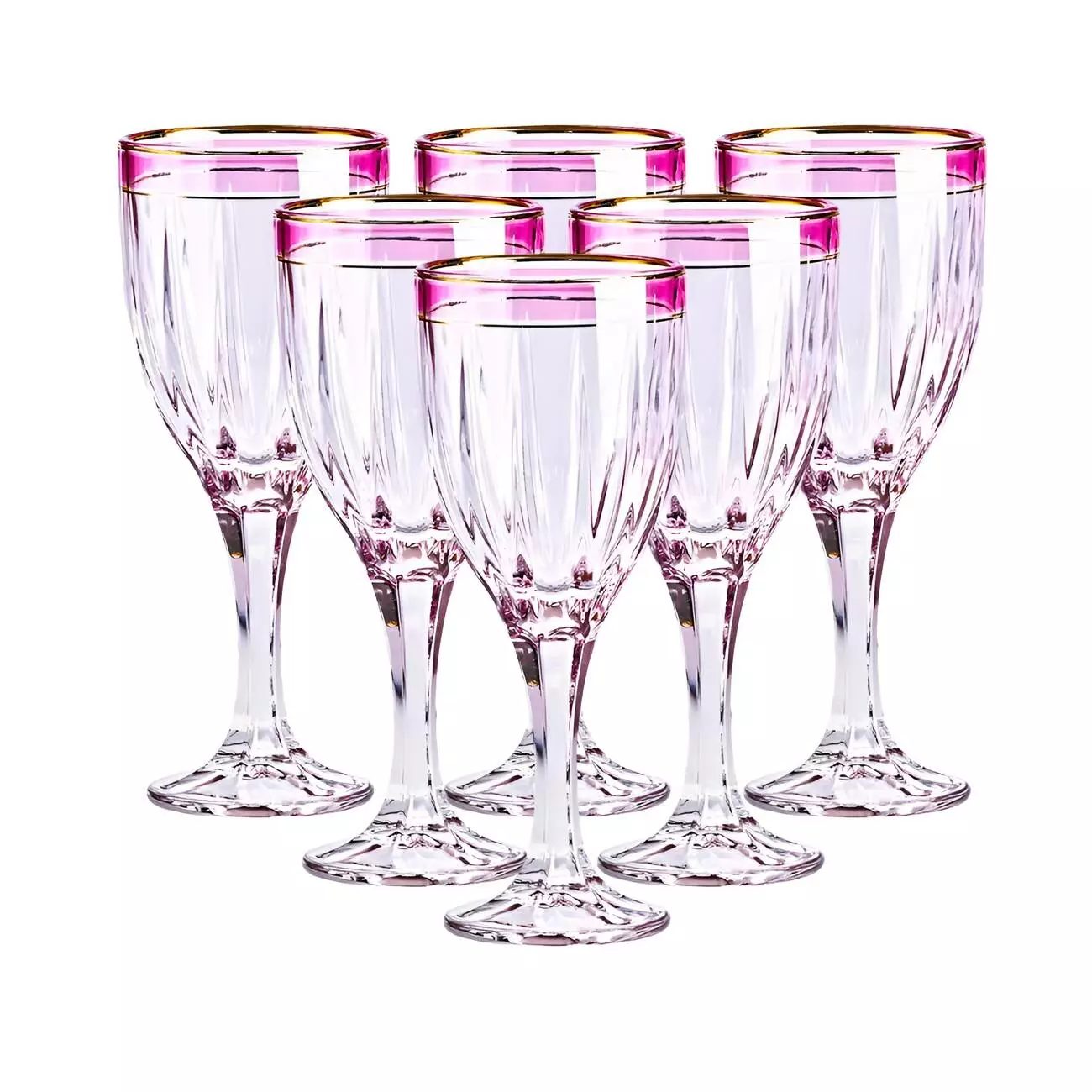 Набір келихів для вина 6 штук із золотою облямівкою додасть