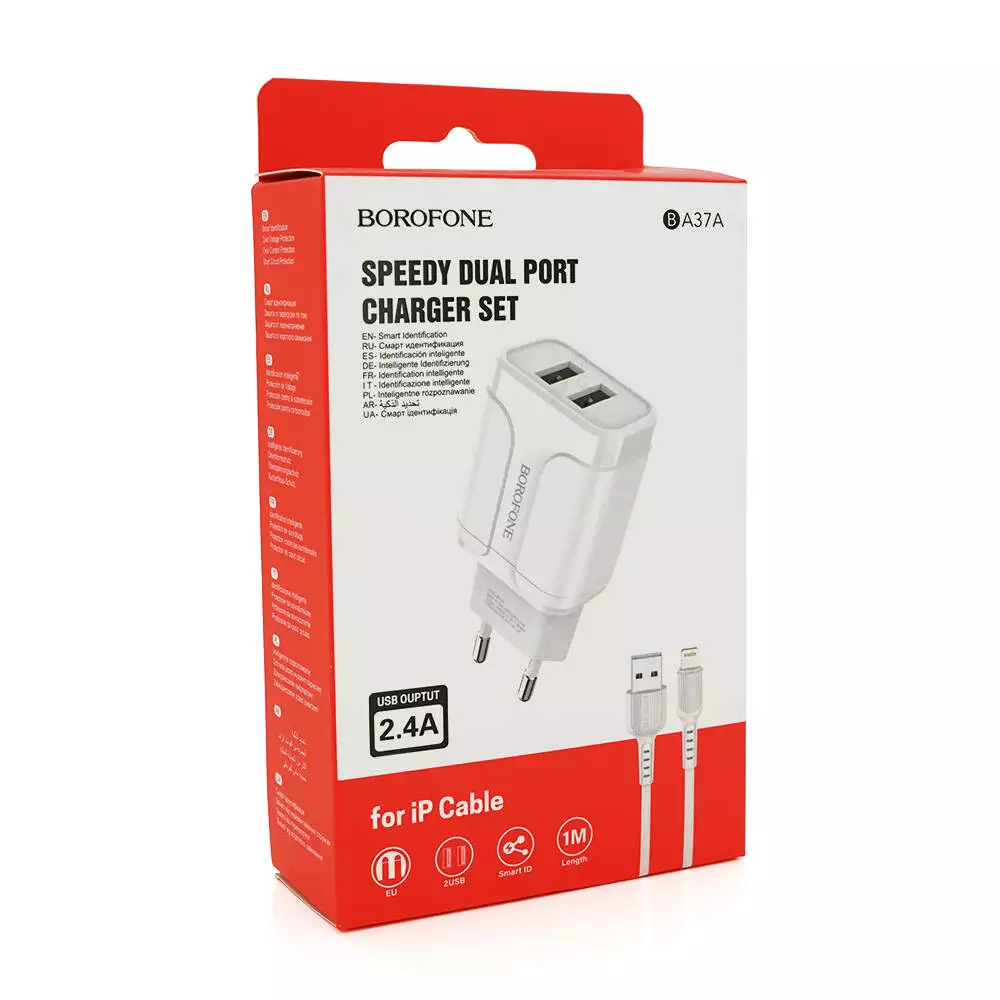 Цей набір включає мережний зарядний пристрій з двома портами USB і
